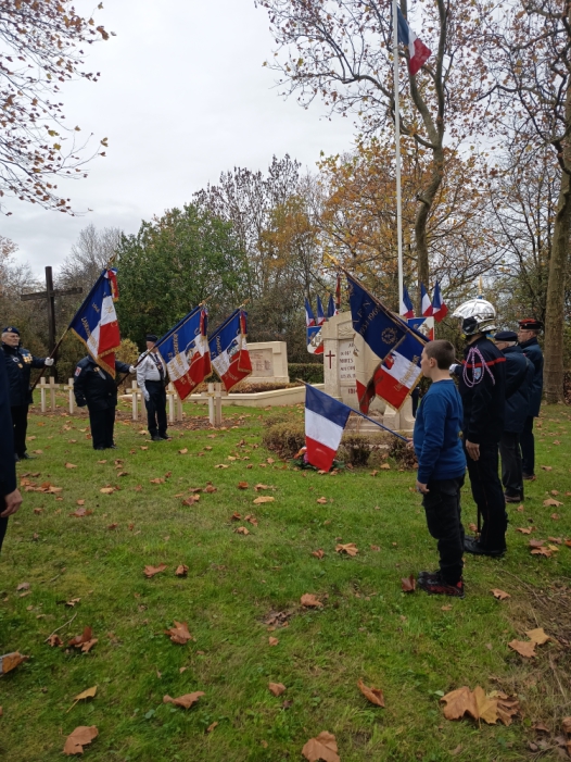 60 ans. Oui, il y a 60 ans, le 12 décembre 1965, au café Bailly, Paul Payeur, Camille Guinot, Louis Payeur, Marcel Coleur, Marcel Lallemand, Paul Jonnette et Gustave Dombrat se sont réunis et ont créé la section UNC de Bisping - Angviller. Le 1er Président élu fut Paul Payeur. Ce samedi 1er novembre 2025, la cérémonie du Souvenir, organisée à la Nécropole nationale de Bisping, a permis de leur rendre également hommage. Nécropole singulière réunissant sur la gauche 728 soldats allemands et sur la droite 374 soldats français, tous tombés au Champs d’Honneur lors de la guerre de 1914-1918. Tout a débuté par le rassemblement des porte-drapeaux de l’UNC de Bourdonnay - Ommeray, de l’UNC de Languimberg et l’UNC de Belles Forêts sur le parvis de l’église à 9h00. Après l’office religieux célébré par le Père Paul Baillot, une quête pour le Souvenir Français a précédé le départ en cortège vers la Nécropole. Le Lieutenant-colonel Uvas et deux de ses hommes ont emmené les pompiers locaux suivis des porte-drapeaux et des participants. Le dépôt de la gerbe a été effectué conjointement par Marina Jonnette, Maire de la commune de Belles Forêts et Thierry Boucher, Président de l’UNC de Belles-Forêts et environs. En clôture de cette cérémonie, emprunte de respect et de recueillement, l’assemblée a chanté « Mille colombes », animée par Christiane Simerman et Michèle Bruneau. Lors du verre de l’amitié, offert par la commune, Marcel Kubler a été mis à l’honneur. Il est adhérent de l’association depuis le 20 juin 1981 et fait également parti du conseil d’administration depuis cette date. Félicité pour son engagement au sein de l’association depuis 44 ans, Thierry lui a remis la Médaille du mérite UNC échelon OR.