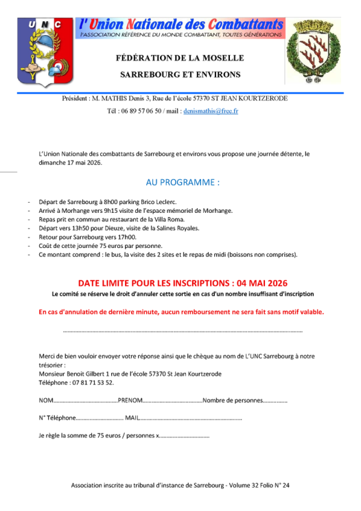 L’Union Nationale des Combattants – Pays d’Albe & environs, fidèle à ses valeurs, soutient deux actions mosellanes en 2025 :